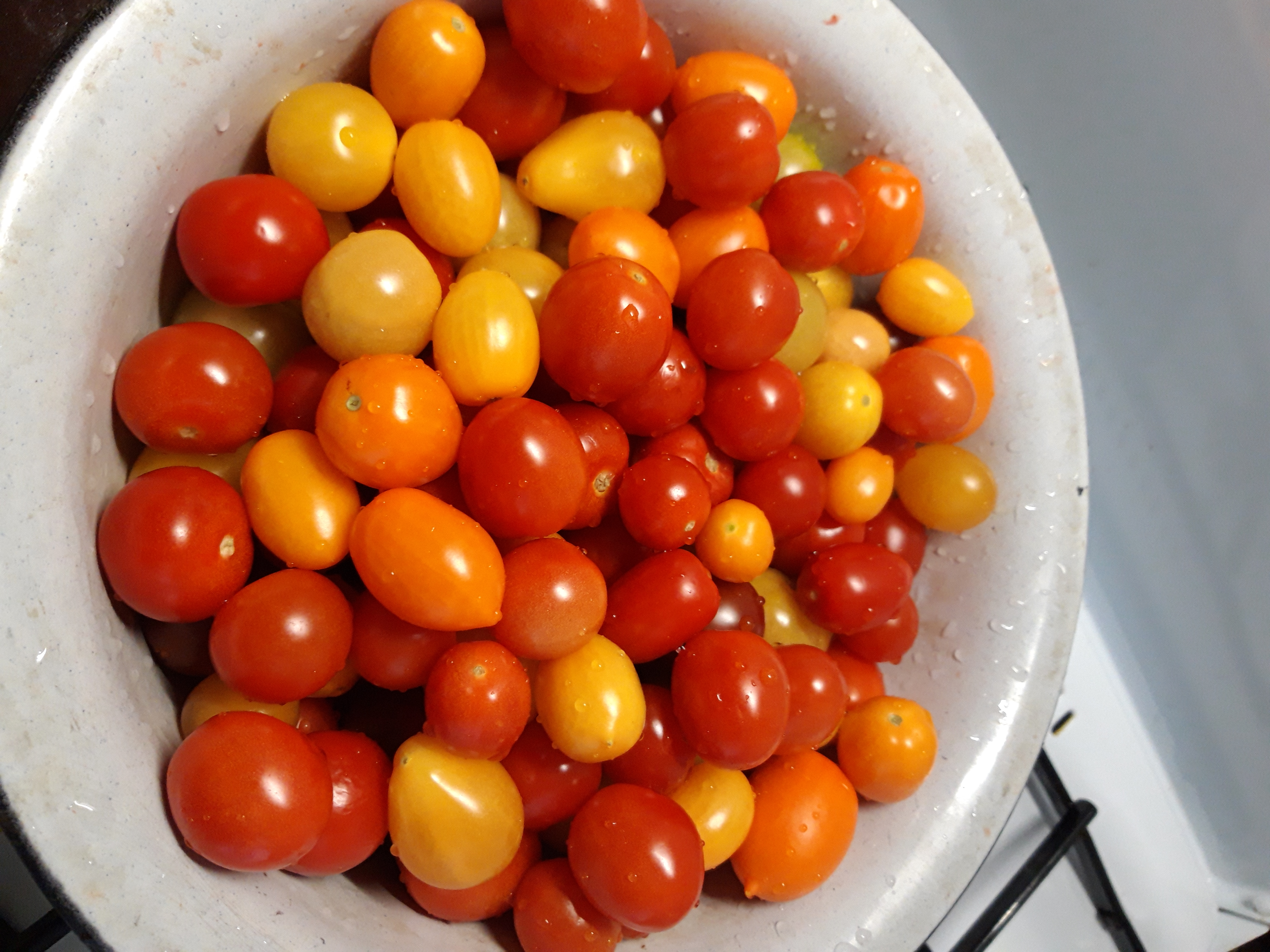 Ну и сами помидоры , я закрываю обычно помидорки черри в банки емк. 1 литр.